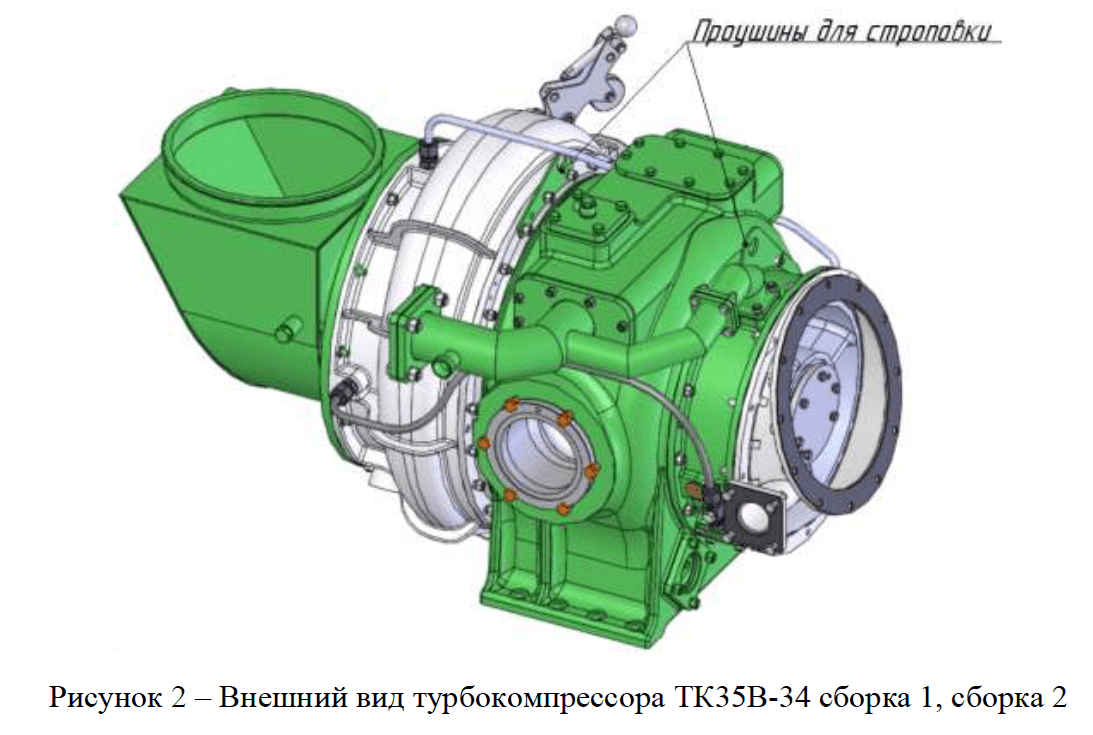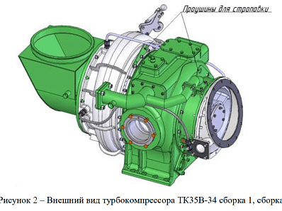 На базе конструкции турбокомпрессора ТК41В-21 (д/г 1А-9ДГ исп. 2 тепловоза 2ТЭ116), хорошо зарекомендовавшего себя в эксплуатации, разработан турбокомпрессор ТК35В-34. При разработке турбокомпрессора ТК35В-34 было уделено внимание повышению КПД турбокомпрессора (особенно КПД турбины) на частичных позициях работы тепловоза. Разработанная новая проточная часть турбины позволила повысить КПД турбины на режиме тепловоза от 25% до 50%, N дизеля - на 5-6% с обеспечением КПД турбокомпрессора на режиме полной мощности не ниже 63%. Такая настройка турбокомпрессора обеспечивает повышение приемистости дизеля и снижение эксплуатационного расхода топлива. По присоединительным и габаритным размерам турбокомпрессор ТК35В-34 полностью взаимозаменяем с турбокомпрессором 9ТК и не требует дополнительных переходных элементов при его монтаже на двигателе.
